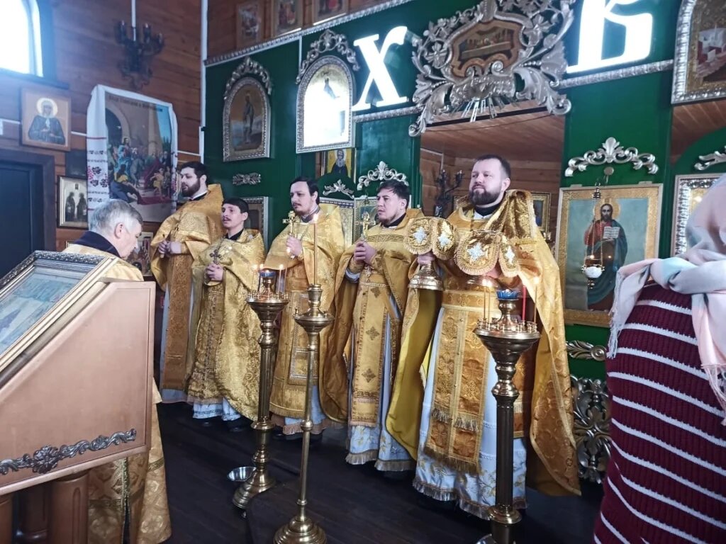 Священнослужители совершили Божественную литургию, которую возглавил благочинный Калтанского округа.